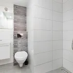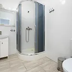 Für zusätzlichen Komfort in der Ferienwohnung Len - Przy Samym Zejsciu Na Plaze sorgen eine begehbare Dusche, eine getrennte Toilette und eine Badewanne. Das Badezimmer ist zudem mit Handtüchern ausgestattet.