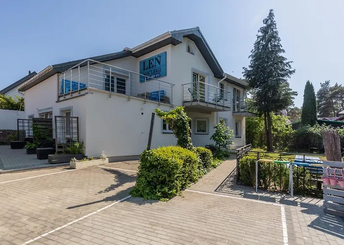 Die 9-Zimmer-Ferienwohnung Len - Przy Samym Zejsciu Na Plaze gilt als eine Unterkunft am Strand in Dziwnówek, die sich 65 km vom Flughafen Stettin-Goleniow entfernt befindet. Dieses Apartment bietet Ausblicke auf die Stadt.